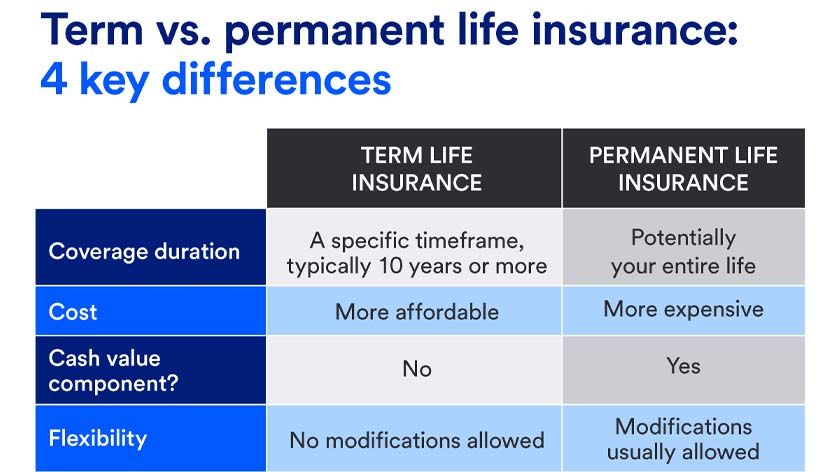 Here are the main differences between term and permanent life insurance policies: